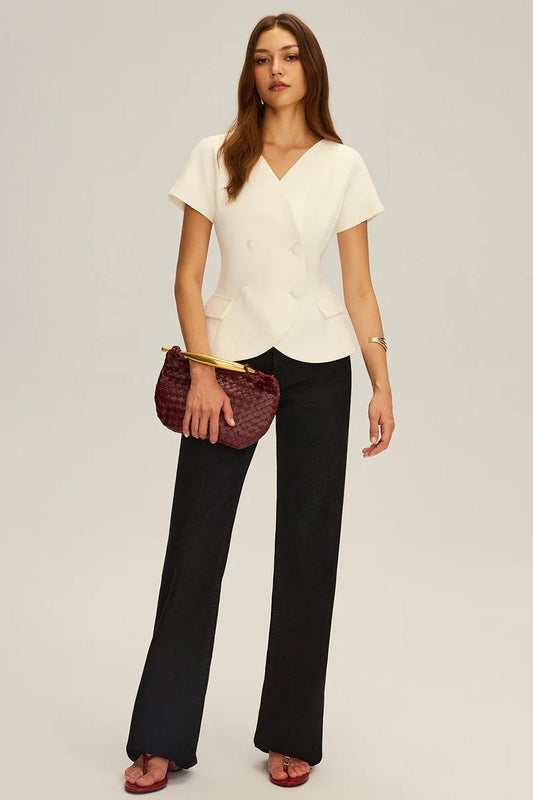 Women's Evening Double-Breasted Tailored Top with Curved Hem